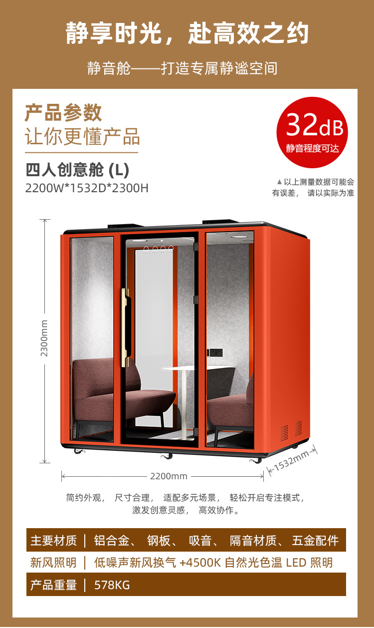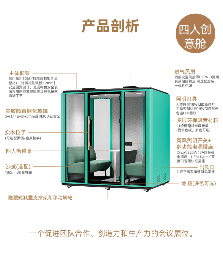 Мобильная креативная кабина на четыре человека звуконепроницаемый офисный переговорный зал может быть настроен