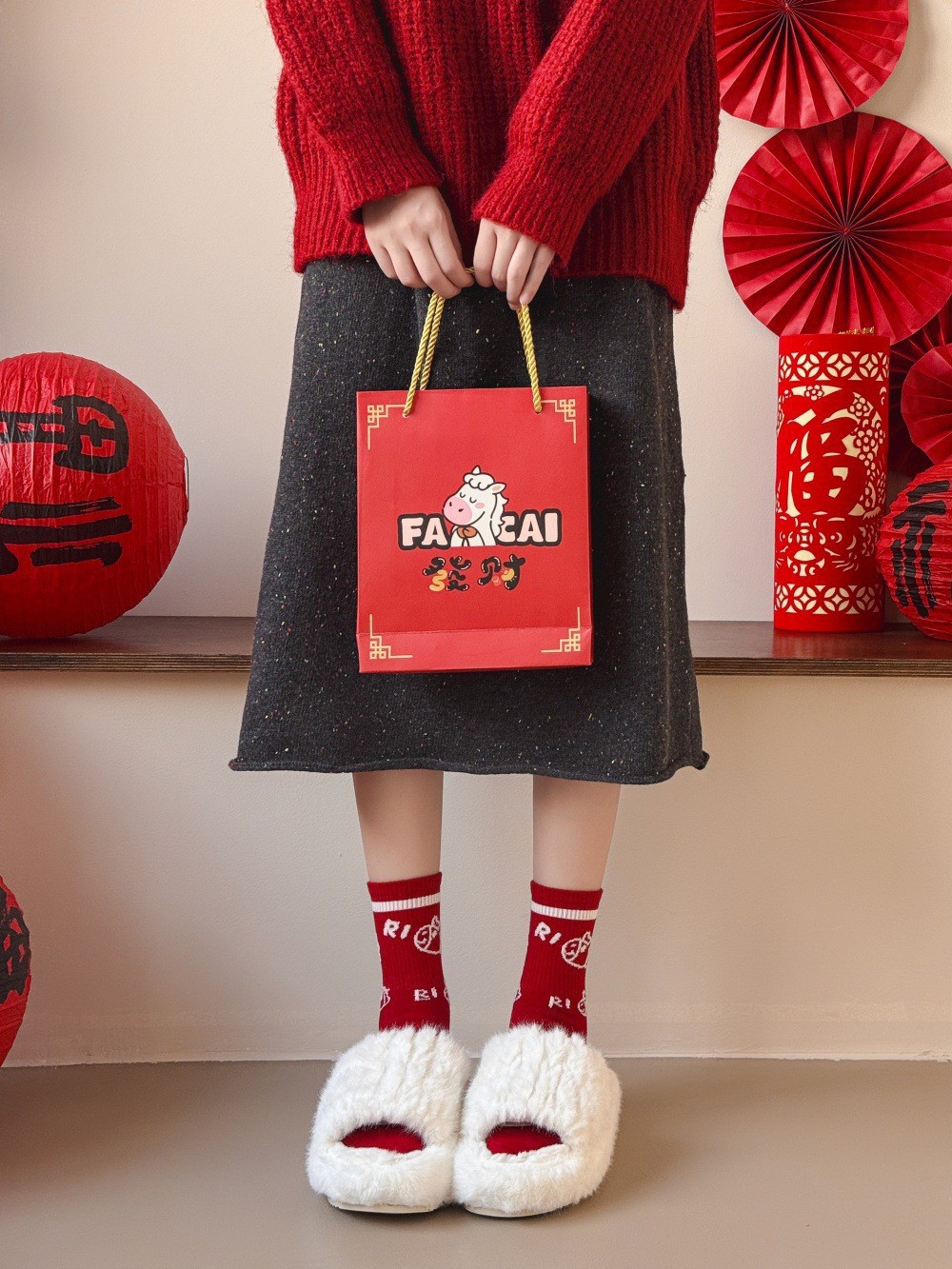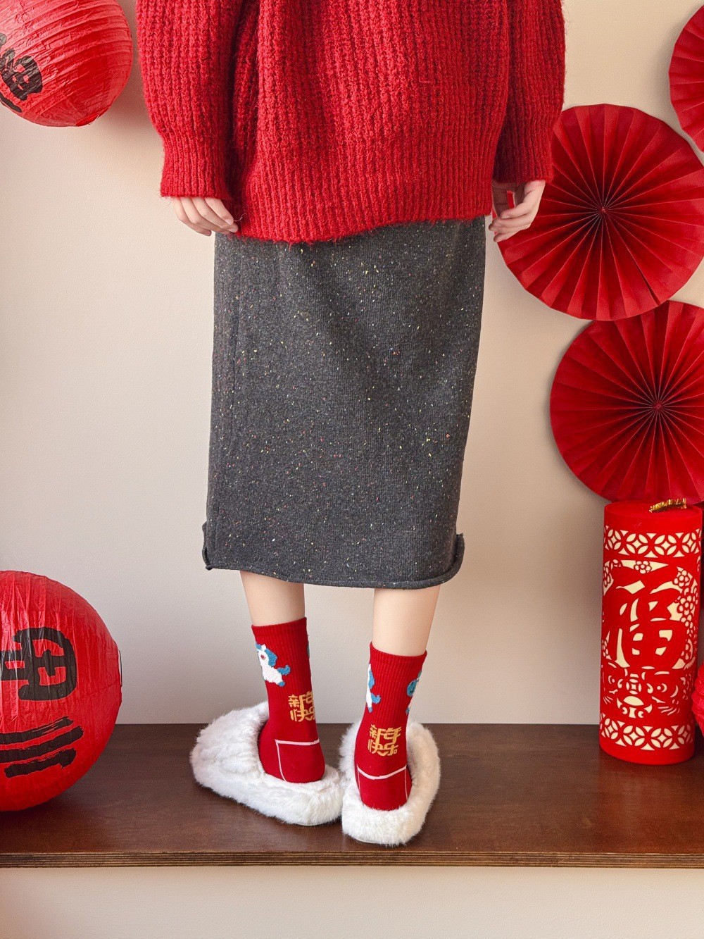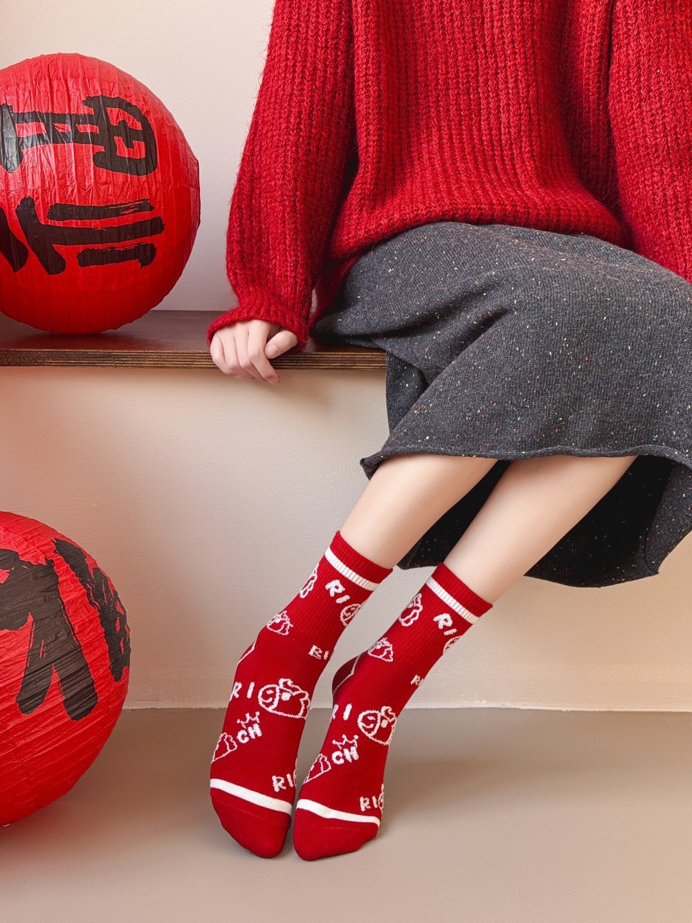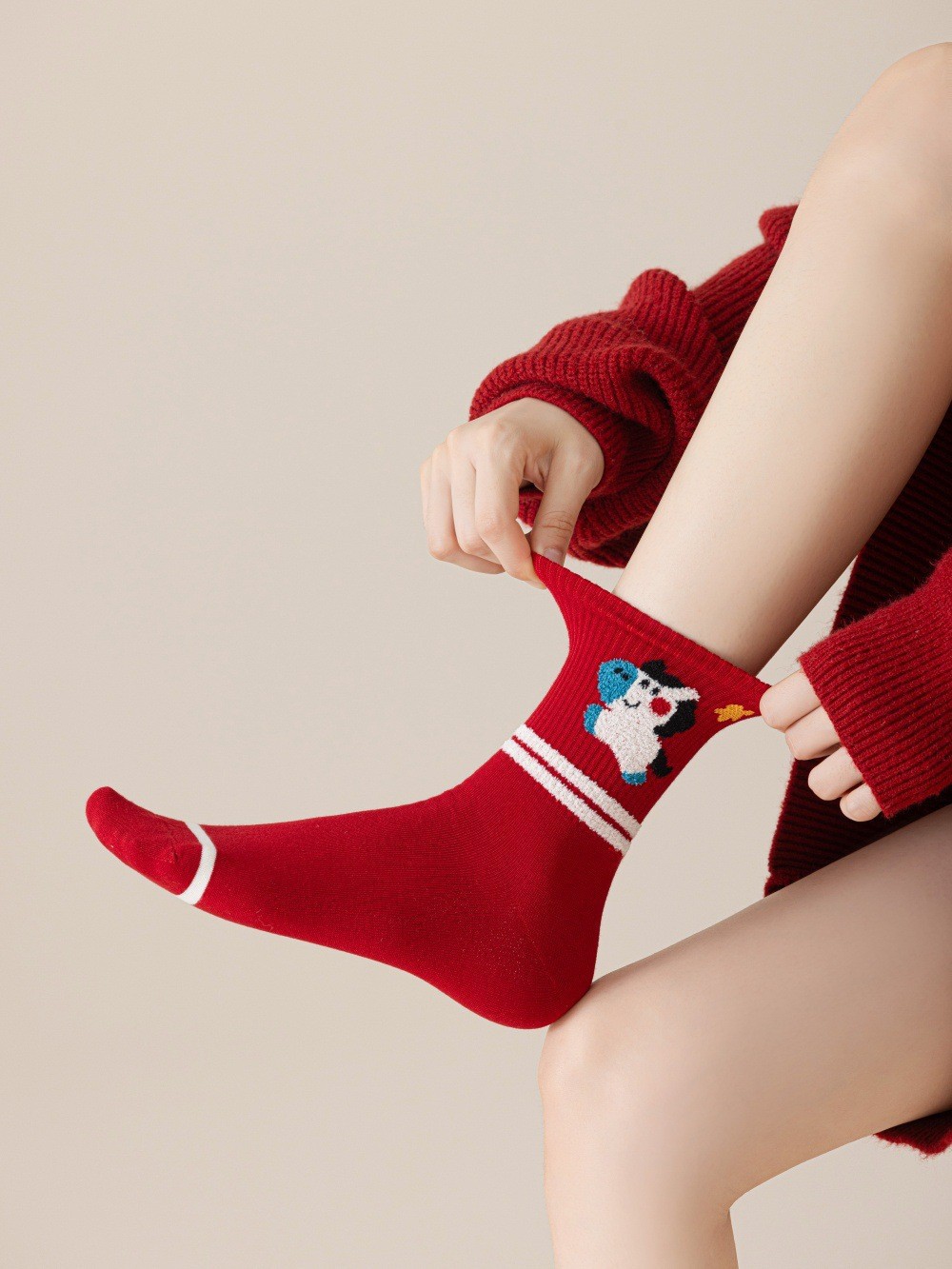 Носки на Новый год 2026 года Лошади для женщин, красные, высокоэластичные, милые с мультяшным пони, женские носки до середины икры из хлопка