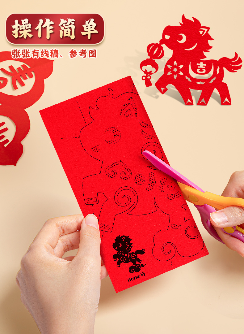Четыре сезона Праздник весны Оконная декорация Вырезка бумаги Благословляющая наклейка на дверь 2026 Год Лошади Новый год Оконная декорация Материалы для ручной работы детей