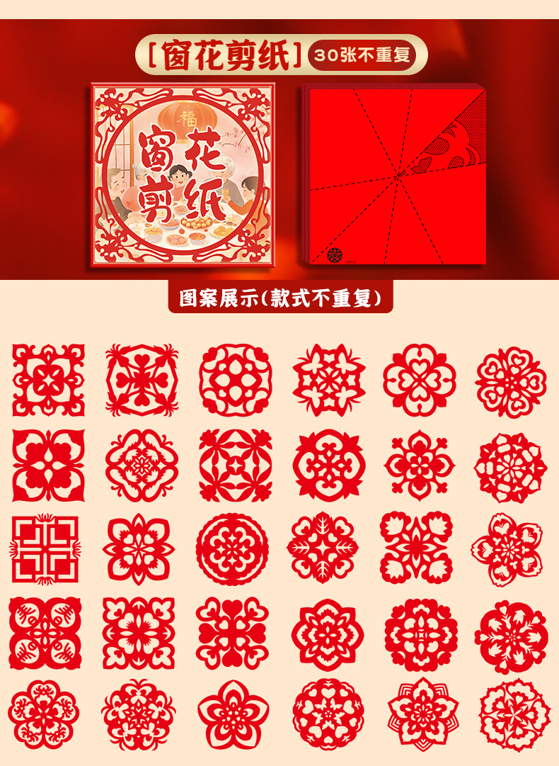 ![]() | [spring festival + window decorations + chinese style] 120 sheets / free scissors + glue stick + traceless glue | ¥8.5 / ≈ 103 ₽ | 2992 | 6153484178481 | |