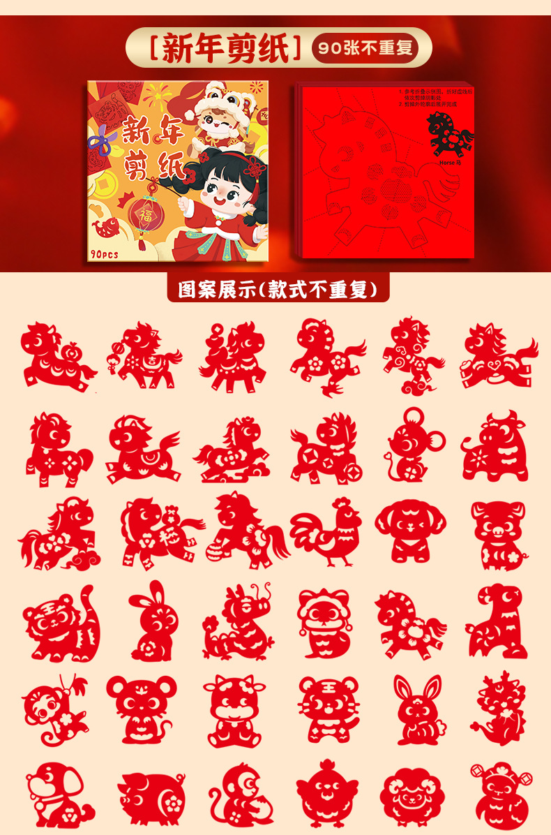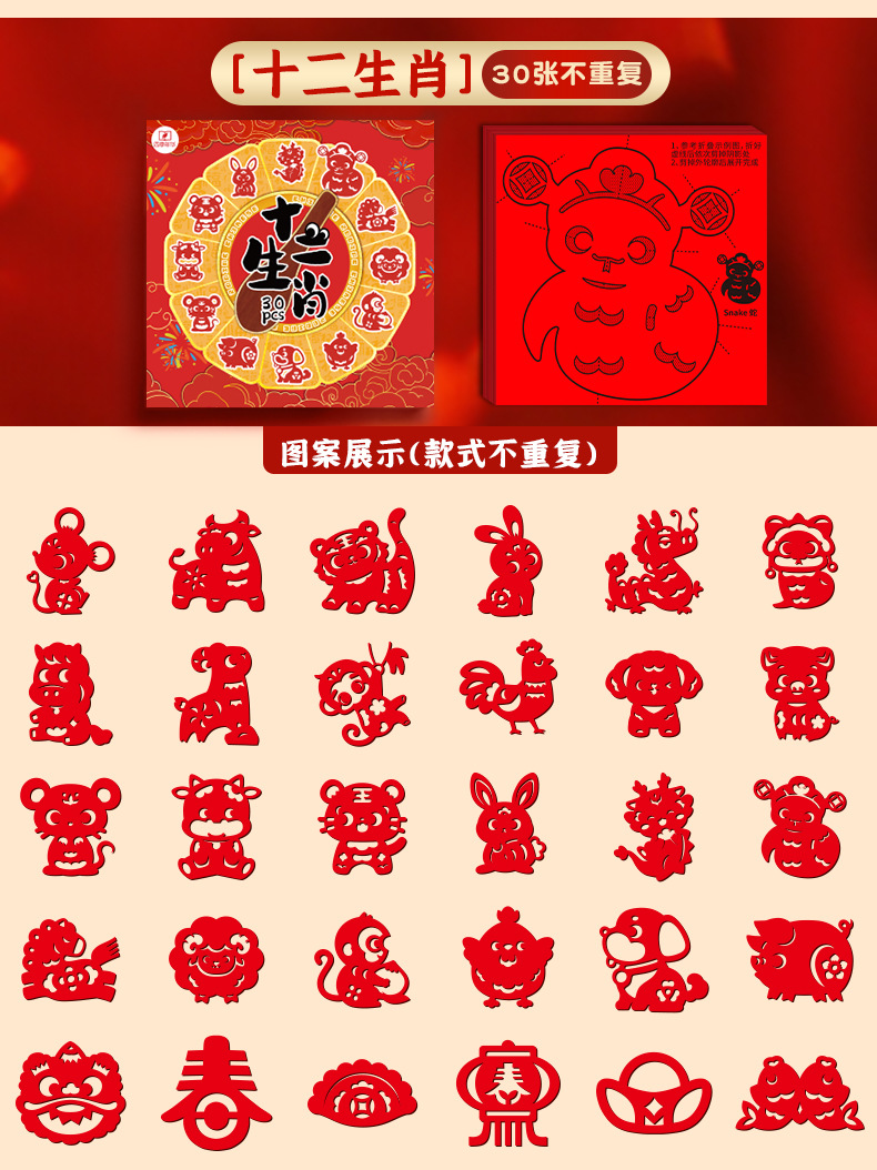 ![]() | [spring festival + chinese zodiac + chinese style] 120 sheets/free scissors + glue stick + traceless glue | ¥8.5 / ≈ 103 ₽ | 1180 | 6153484178482 | |