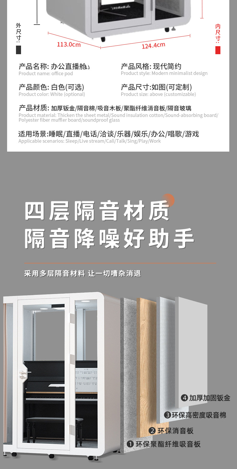 Звуконепроницаемая комната, мобильная телефонная кабина, тихий склад, офисный Ai интервью склад, комната для прямых трансляций, склад для сна, комната для пианино, дом